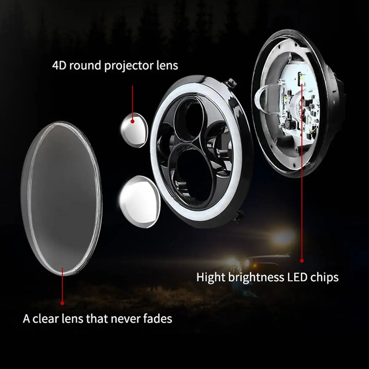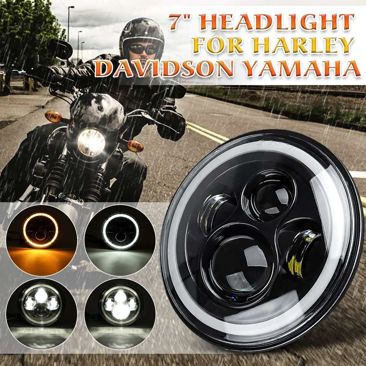 BEST QUALITY 7" Motorcycle LED Headlight Head Lamp Bulb DRL With Angel Halo Ring For Harley Davidson For Yamaha